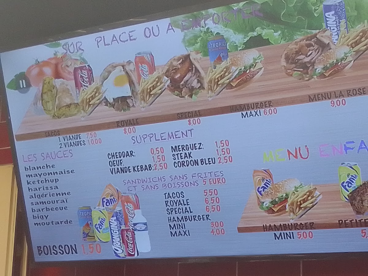 The culinary journey doesn’t end there; diners can customize their meals with a variety of sauces, from mildly spicy Algerien to fiery Harisa. Fast service, a warm atmosphere, and a menu designed for all preferences make La Rose des Sables a must-visit spot for a quick bite or a cozy dinner. Don't miss out on this delightful culinary destination!